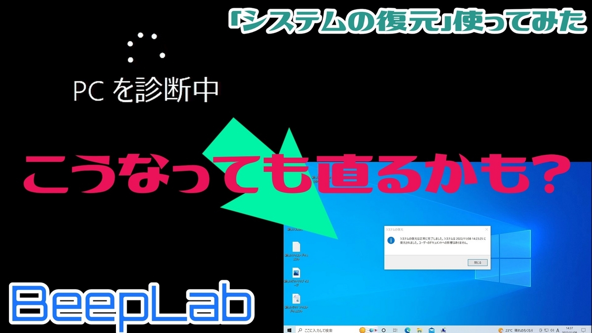 2023-04-01 【困る前に】システムの復元を使いこなそう【Windows10/11】 困った時のトラブル解決 おはようございます。 BeepLabのMicoです。 今回の動画解説はWindowsの機能である「システムの復元」についてです 以下動画 www.youtube.com ・復元ポイントを予め作っておくことがポイント・時間は掛からないので思い立ったらやっておくと吉 Mico